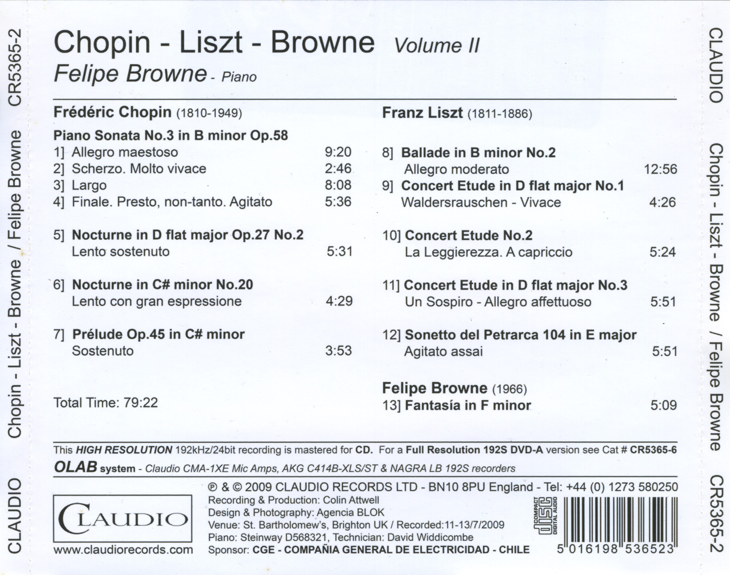 In 2009 he recorded for “Claudio Records” his second volume, including works by Chopin,
